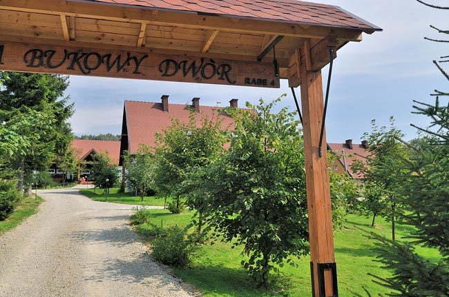 Bukowy Dwór, położony po północnej stronie przełęczy Żłobek we wsi Rabe jest interesującym